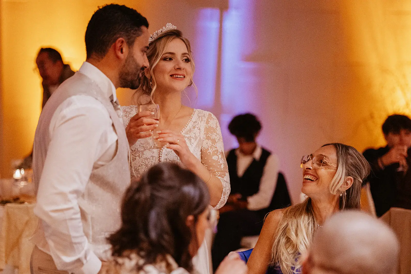 Des préparatifs jusqu’à 1h du matin (maximum) afin de capturer tout ce qui fait vibrer votre mariage : la cérémonie, les discours, l’ouverture de bal, les rires partagés sous les lumières de la fête et cette douce effervescence qui n’appartient qu’à la nuit.